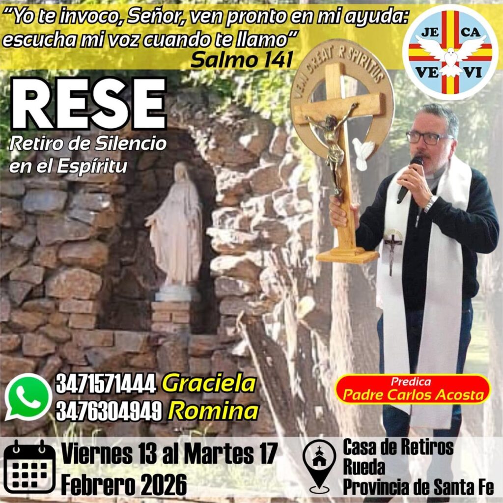 La Comunidad Carismática “Jesús Camino, Verdad y Vida” invita a participar del Retiro de Silencio en el Espíritu (RESE), que se realizará durante el feriado de carnaval, del viernes 13 al martes 17 de febrero de 2026, en la Casa de Retiros Sagrado Corazón, ubicada en Rueda, provincia de Santa Fe. Bajo el lema del […]